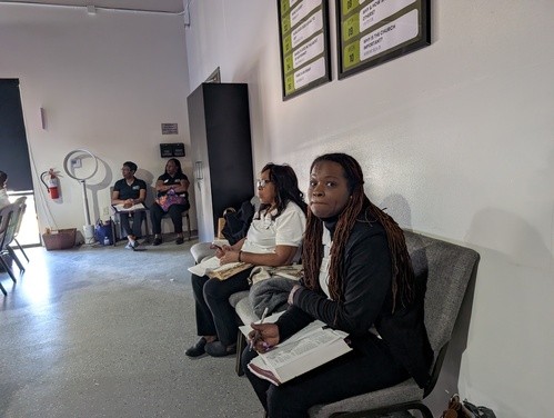 1. Filling out a prayer card during service